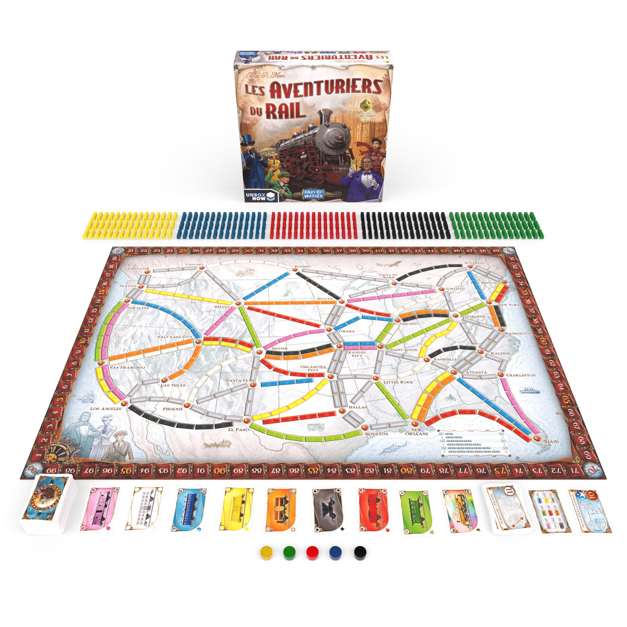 Les Aventuriers du Rail vous embarque dans une aventure ferroviaire unique : reliez entre elles les villes des États-Unis ! Réalisez vos objectifs et gardez un œil sur les chemins de fer de vos adversaires ! En voiture !